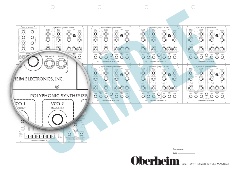 Patch sheets are available for both the single-manual and double-manual versions of Oberheim's massive and legendary eight-voice synthesizer. Choose the version that matches your instrument.