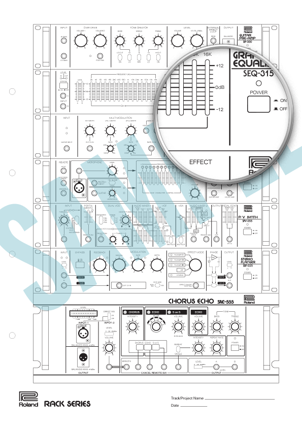 Roland's RSS series of rack-mounted effects consisted of four units: The RV-800 Stereo Reverb, the PH-830 Stereo Phaser and two Graphic Equalizers, the GE-810 and GE-820.