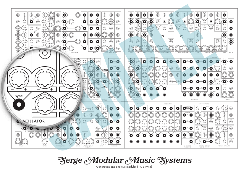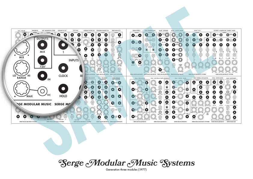 Serge modules (and hence Serge panels) underwent several changes of design between each catalogue during the 1970's before settling on the rounded corner design that is reproduced to this day. I aim to offer a complete range of modules from those available from 1973 and throughout the 80's when Serge Tcherepnin was still involved with their production. Below are examples of the early 1973-1975 and 1977 catalogue modules. Later modules from 1979 onwards will be forthcoming. If you'd like a patch sheet for your vintage Serge, please email me with your configuration and I'll let you know what I can offer.