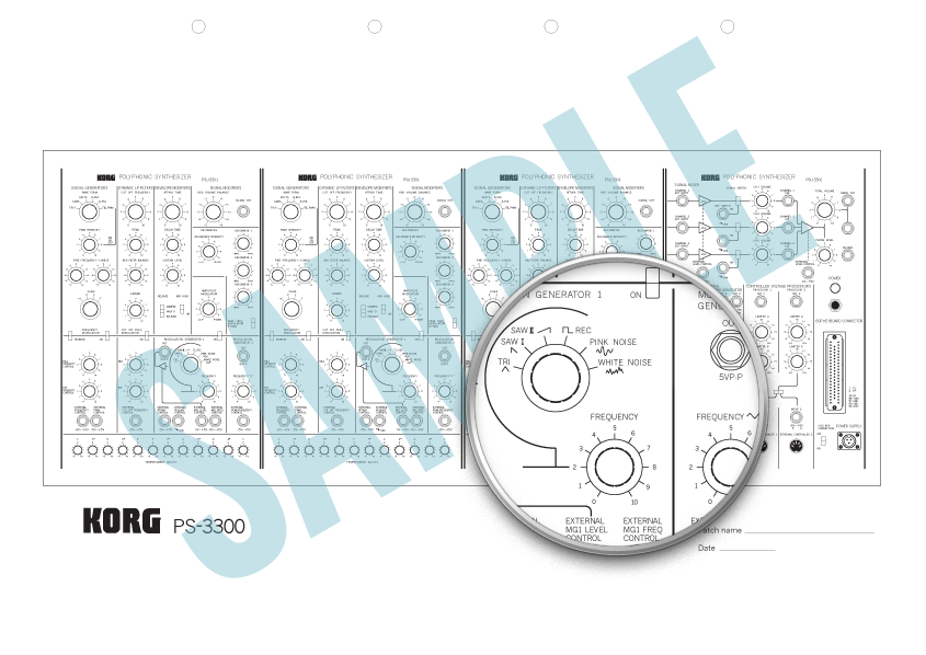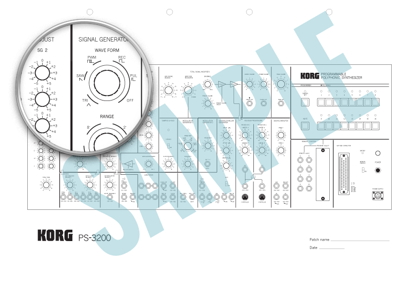 The groundbreaking true-polyphonic synth series from Korg. While the PS-3200 did in fact have patch memory, I have provided a patch sheet here for it simply to complete the set.