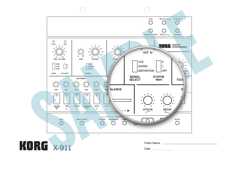 Korg's MS-era Guitar Synth simply took a standard 1/4" instrument input. No dedicated controller required. This patch sheet shows all patch points, both front and back, to allow you to record your unique setup.