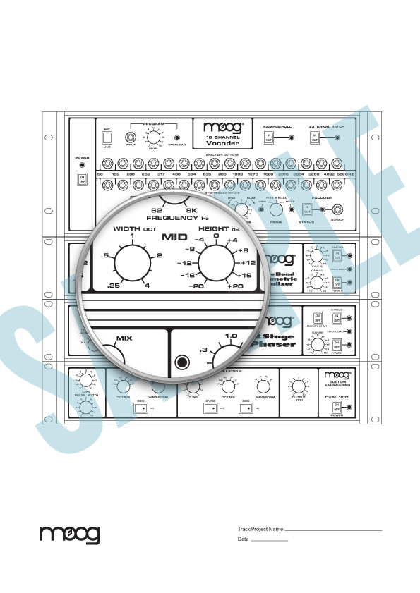 Moog began introducing its line of signal processors back in early 1978, starting with the Ten-Band Graphic Equalizer and the Three-Band Parametric EQ. Over the course of the next year or so they added a Vocoder (licensed from Harold Bode), Stereo Phaser, Dual VCO and String Filter—the latter two labelled with the name of the newly-founded "Moog Custom Engineering" division.
